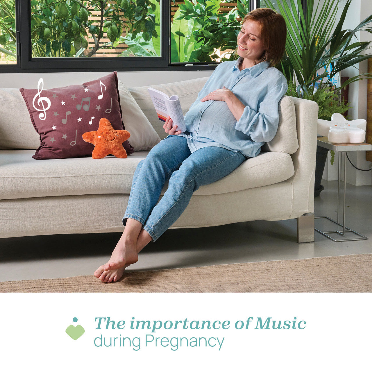 - Estrella de tela: peluche muy suave, que se puede utilizar desde el embarazo. Gracias a su forma cóncava, la madre puede colocar la estrella sobre su vientre y activar un ciclo automático de 20 minutos de música.
