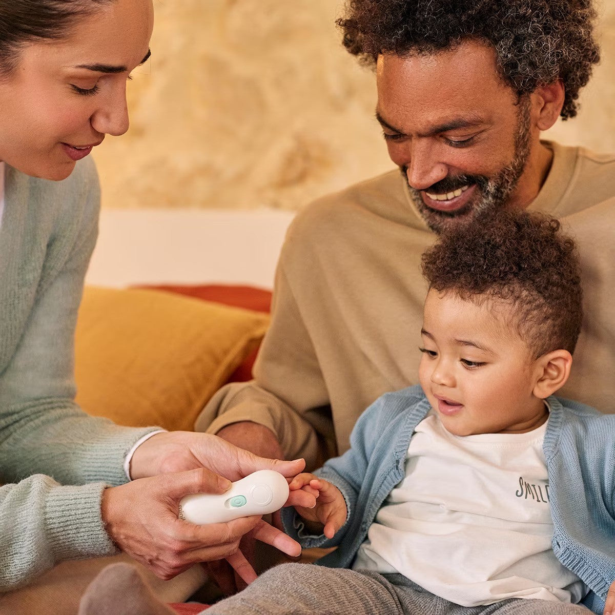A lima inclui 6 cabeças intercambiáveis diferentes para lixar as unhas delicadas do bebê de forma rápida, fácil e segura, além de se adaptar às necessidades de toda a família.