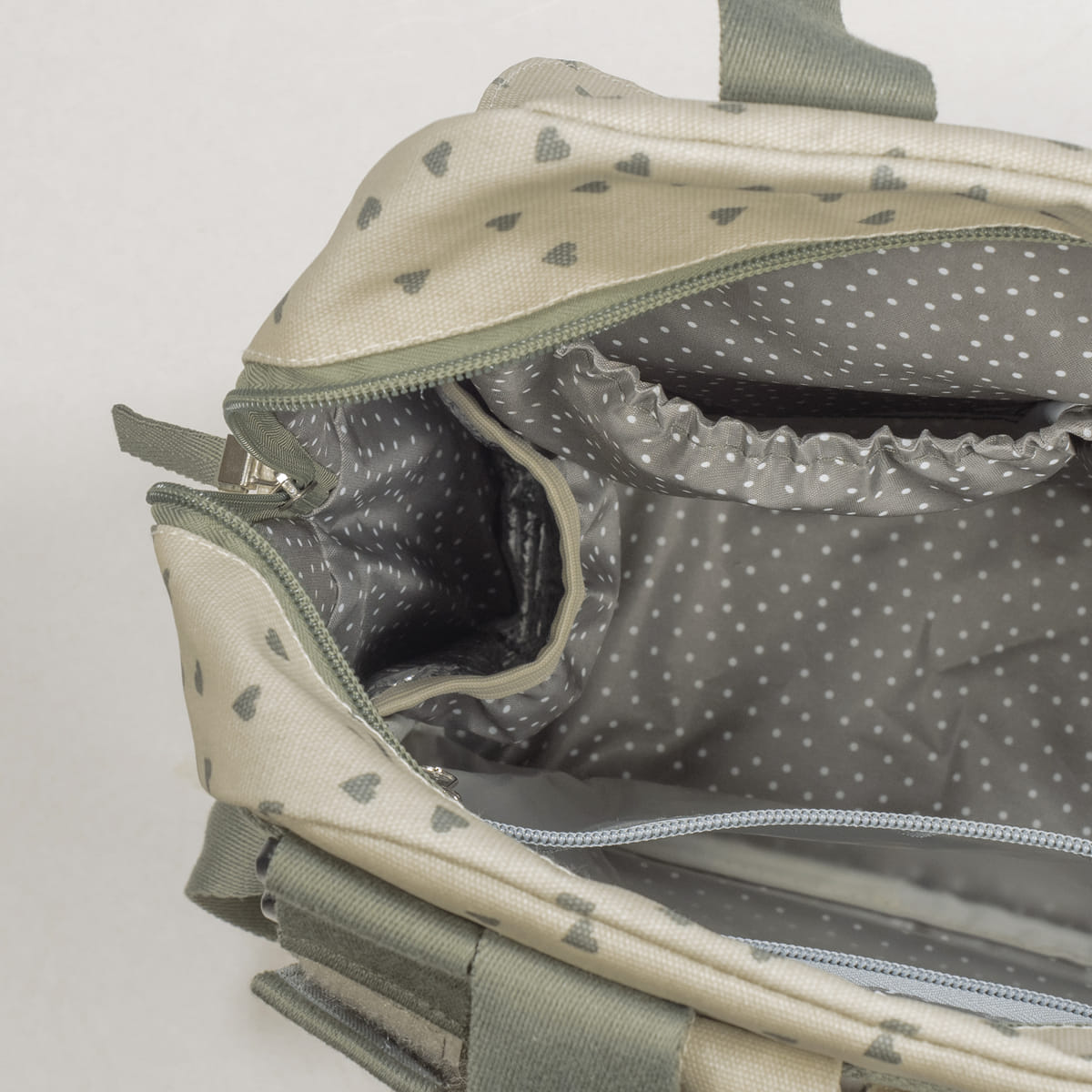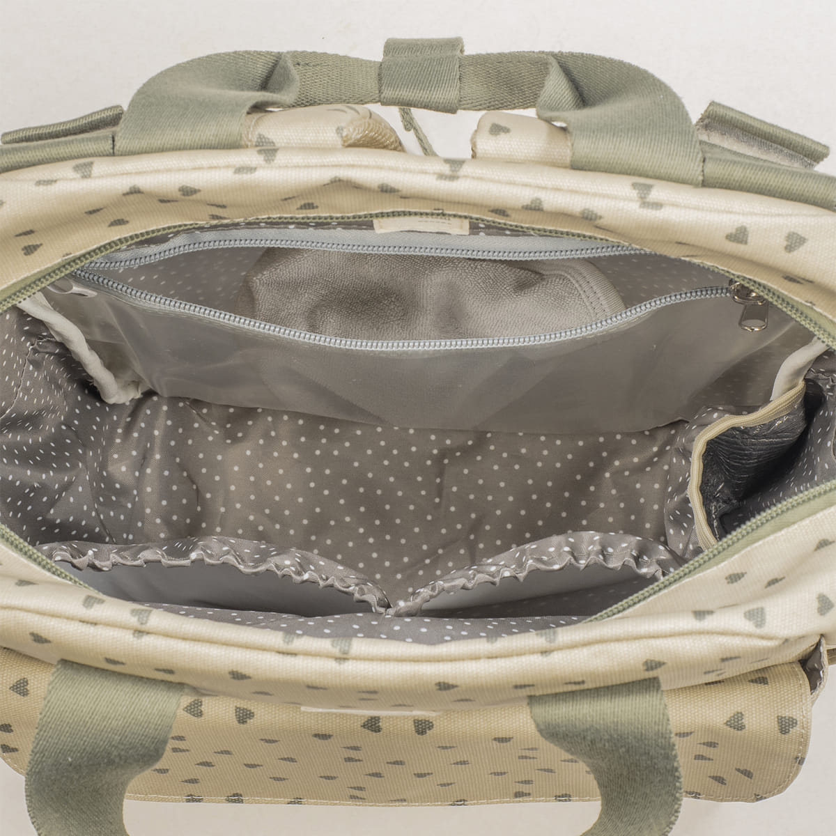 Uma bolsa-cesto e mochila moderna e urbana ao mesmo tempo, ideal para carregar suas coisas e as do seu bebê, com muito estilo, em todos os seus passeios. A bolsa para carrinho Poppy Moss com corações é um modelo muito leve, durável e multifuncional, com bastante capacidade para carregar tudo o que você precisa para o passeio do seu bebê. Seu design oferece vários bolsos externos e internos para manter tudo organizado e à mão. Possui bolsos para guardar mamadeiras e mantê-las seguras, elásticos para talheres e lenços umedecidos, um compartimento para garrafa de água e muito mais. Inclui um trocador que combina com a bolsa de maternidade e um bolso laminado para guardar roupas molhadas e isolar a umidade do restante da mochila. A bolsa inclui duas alças curtas ajustáveis que facilitam o encaixe em qualquer modelo de carrinho, alças de mão e alças acolchoadas para pendurar nos ombros ou nas costas, sem causar desconforto devido ao peso. Alta qualidade e muito estilo. Feito de um material durável e fácil de limpar. A Walking Mum protege seu bebê usando os melhores tecidos, livres de corantes azo e substâncias nocivas à saúde. Nossa coleção Walking Mum mantém toda a qualidade da marca Pasito a Pasito, mas com um estilo distinto, moderno e urbano que se destaca, para personalizar seus passeios com seu bebê de forma diferente. As bolsas de maternidade desta linha são mais esportivas e práticas, especialmente pensadas para mamães e papais modernos que apreciam os designs mais modernos e modernos, sem abrir mão da qualidade e funcionalidade dos acessórios que complementam e tornam cada passeio com seus bebês mais confortável. Especificações: Materiais: 100% algodão laminado. Medidas: 28 x 37 x 12 cm.