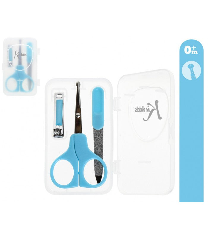 - Este prático conjunto para manicure infantil inclui uma tesoura com pontas arredondadas para um manuseio mais seguro, um cortador de unhas, uma lima e uma caixa para armazenamento e transporte.