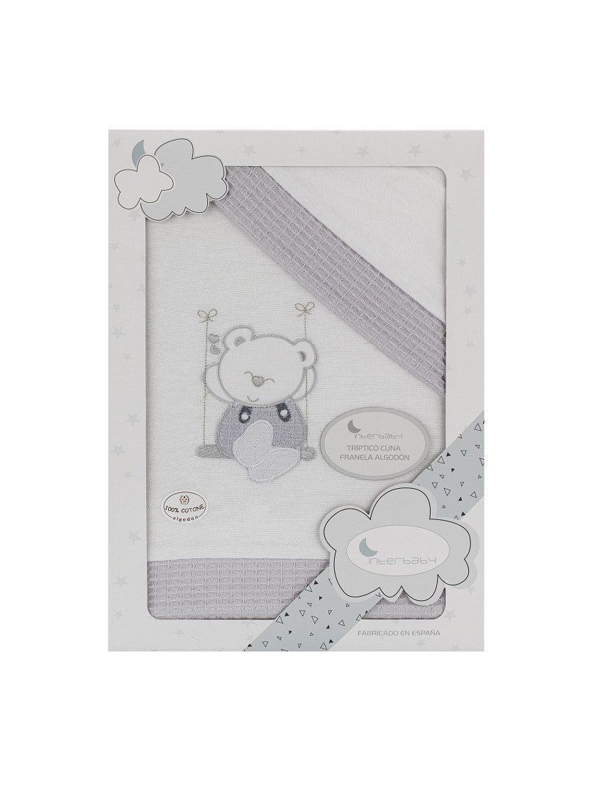 Inclui : lençol justo, lençol plano e fronha, flanela em caixa decorativa.