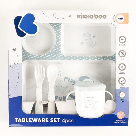 • Conjunto composto por: prato dividido, copo de alimentação, colher e garfo;